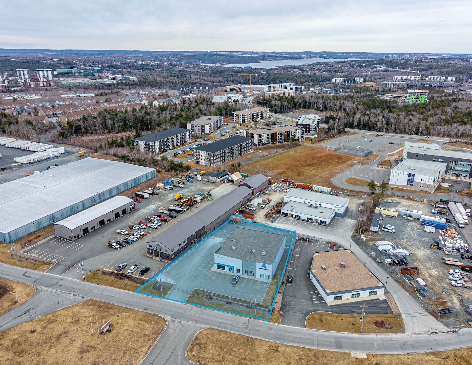 302 Bluewater Road is a well maintained 8,069 square foot class “A” industrial building ideally located in the Atlantic Acres Business Park in Bedford. Built in 2016, the property offers two separately demised units; one unit available for a new owner to occupy in 2027, and a second unit with tenant lease in-place providing additional income. The adaptable configuration is suitable for a variety of industrial uses, and features three grade level loading doors, 18’ clear ceiling height, well appointed office space, spacious warehouse areas, and approx. 8,000 SF fenced rear yard area.
